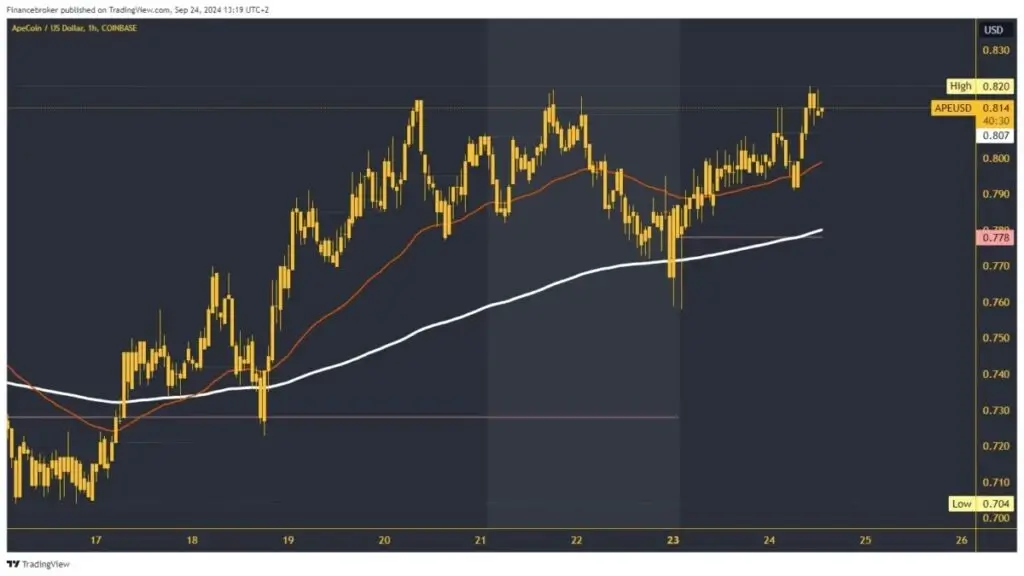 - Today’s bullish consolidation pushed the price of ApeCoin to the 0.820 level, creating a new September high