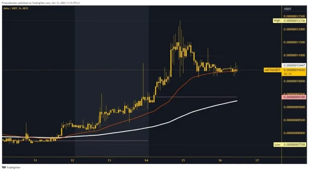 - The price of Akita Inu has been in lateral consolidation in the 0.00000010150-0.00000010750 range since yesterday.