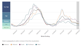 And here is a graph I’m following concerning COVID in wastewater as of April 10th:This appears to be a leading indicator for COVID hospitalizations and deaths. This has been moving down.