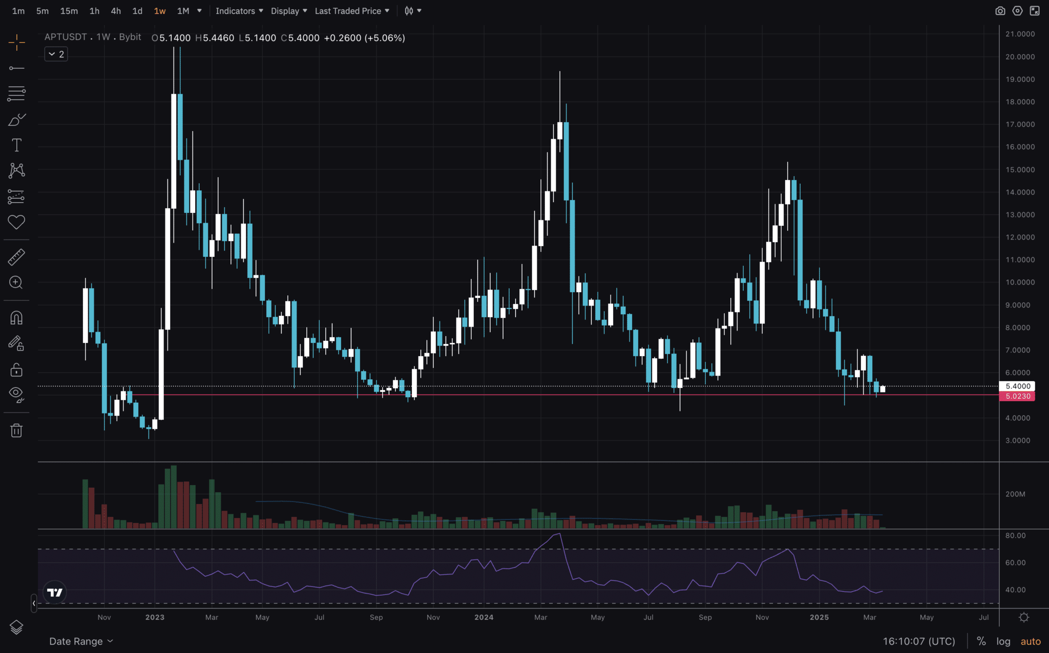 Especially at this key support level and confluence with these candles, we can expect a push to at least $6 this week or next week. Break above that level, and we can start considering the high on the weekly chart. That might be the target for people investing in Aptos lately. Or maybe even higher.