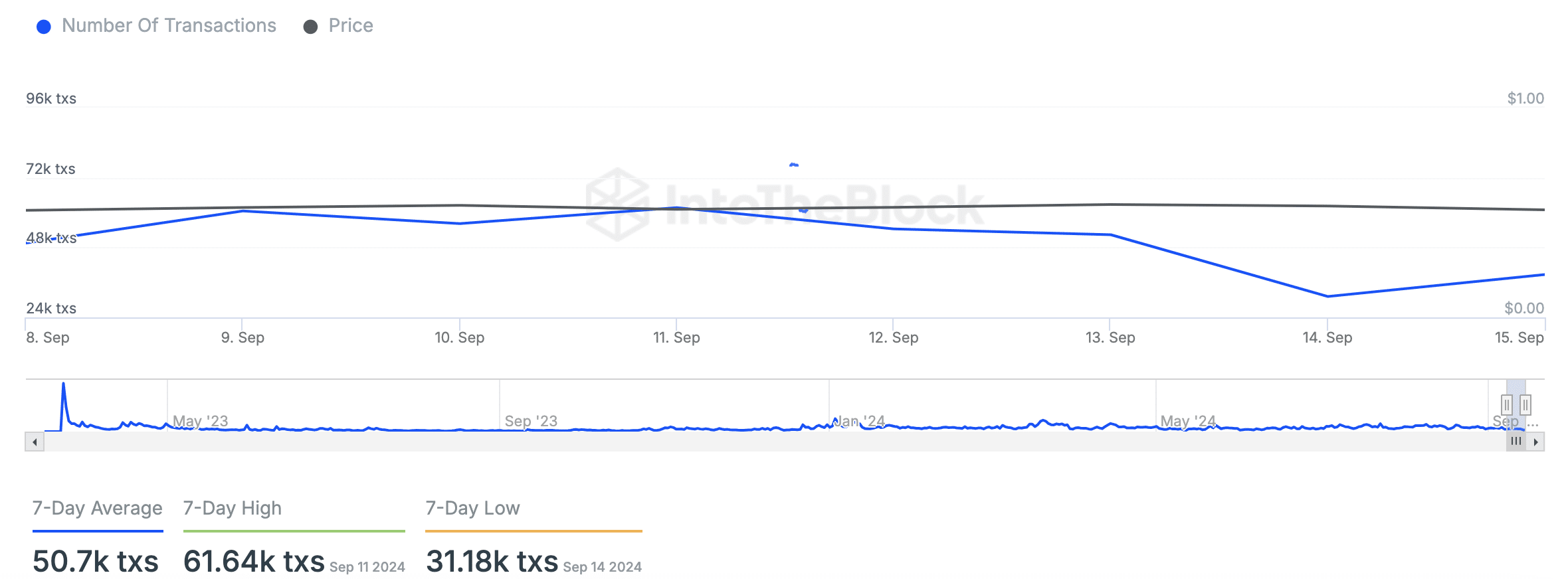 The highest transaction volume in this period was 61.64k on September 11, while the lowest, 31.18k, was recorded on the 14th of September.