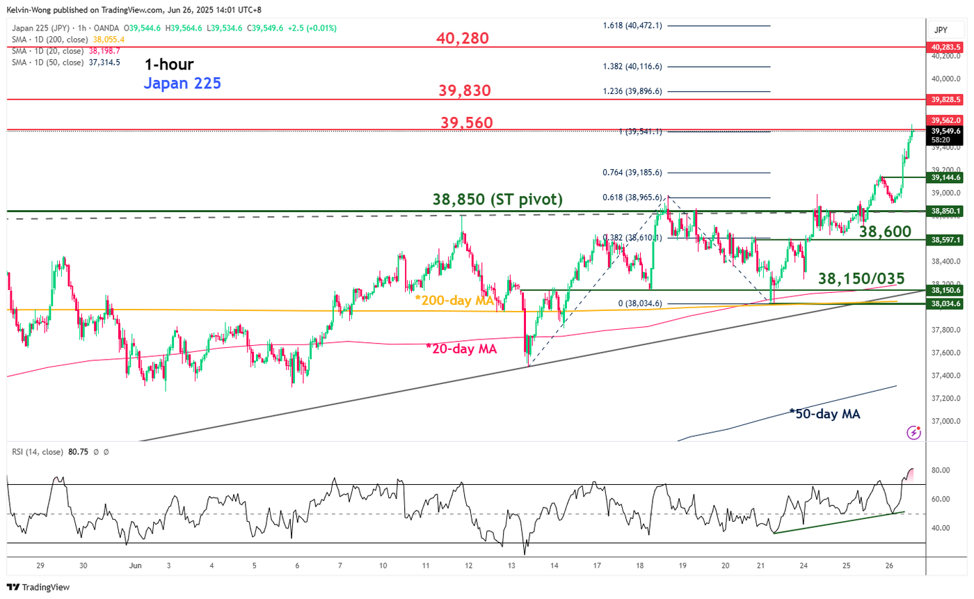 The price actions of the Japan 225 CFD Index (a proxy for the Nikkei 225 futures) have staged a bullish breakout from a 7-week “Ascending Triangle” range configuration, previously in place since 13 May 2025 that indicates the start of a potential multi-week impulsive up move sequence within its medium-term uptrend phase in place since 7 April 2025 low.