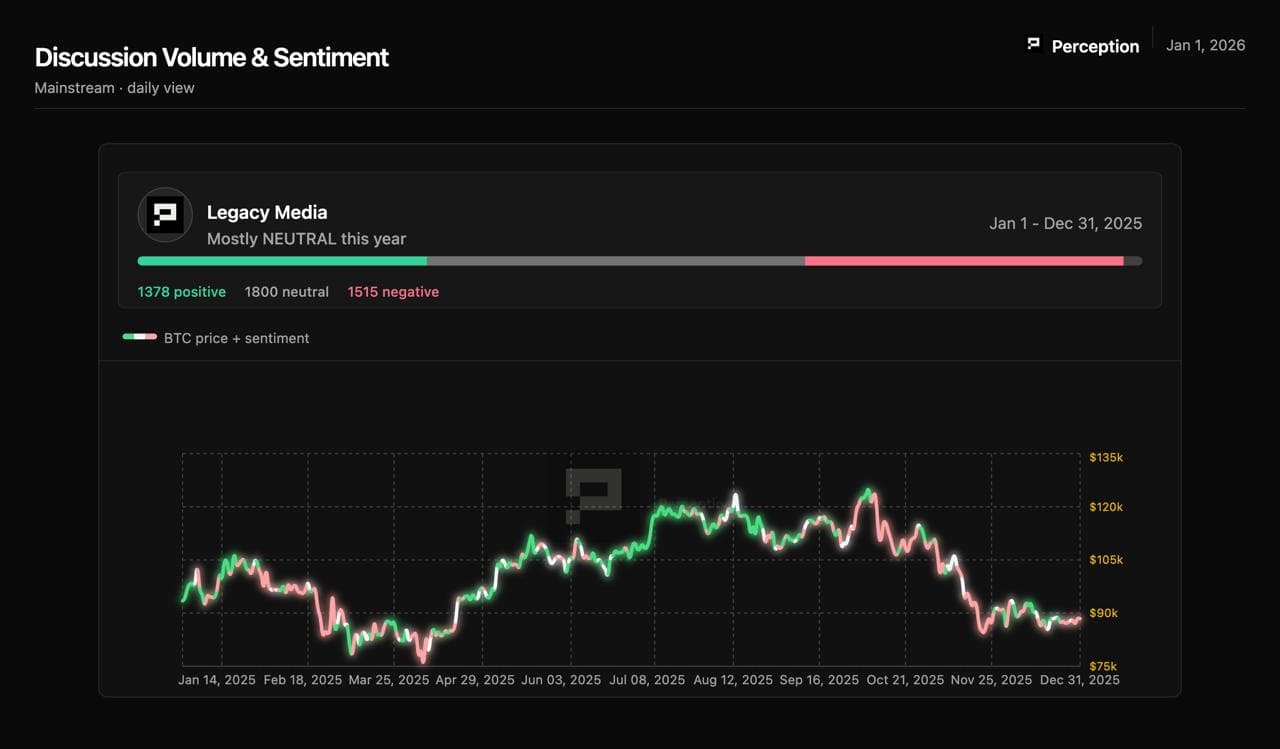Despite mainstream media coverage of crypto becoming more negative in recent years, a report found that in 2025, legacy media’s coverage of bitcoin became more balanced, with neutral reporting outweighing negative stories.