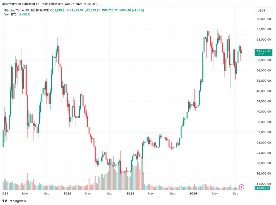 On October 2, an insider from the FSA said the financial watchdog is considering reviewing existing digital asset regulations, potentially paving the way for a crypto exchange-traded fund (ETF) and lower taxes on crypto gains. At press time, BTC trades at $63,720, up 1.9% in the last 24 hours.