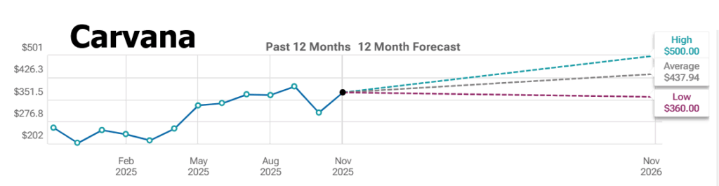 The high end, pushing $500, is where the gunslingers live. These analysts see momentum, operational tightening, demand strength — and they’re betting Carvana keeps sprinting while everyone else is still tying their shoes.