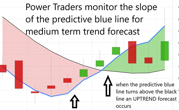 What traders quickly discover is that the slope of the predictive blue line often becomes the first tell — an early hint of trend direction before the broader market acknowledges it. When the blue line begins to rise or fall, it typically signals that the underlying forces driving price are shifting beneath the surface. And perhaps most important, the crossovers between the two lines serve as the system’s decisive moment. When the predictive blue line crosses above the black 10-day moving average, the model is forecasting an emerging uptrend; when it crosses below, it signals deterioration and potential downside. In essence, the black line tells you what has happened — but the blue line, powered by A.I., tells you what the market may be preparing to do next.