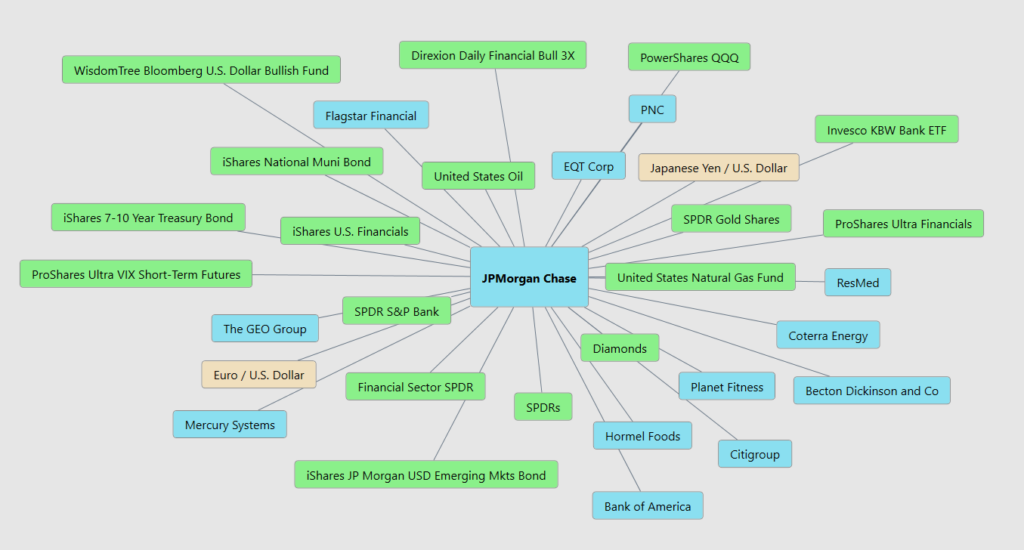 $JPM does not trade in isolation. It sits at the center of a living, breathing ecosystem where interest rates, currencies, commodities, volatility, bonds, and equities all tug on the same rope. When the Federal Reserve turns the rate dial, that signal ripples outward — through the U.S. dollar, Treasury bonds, financial ETFs, and ultimately right back into $JPM’s price. This isn’t theory. It’s plumbing. Banks live on the spread between what money costs and what money earns, and every green and blue box connected to $JPM represents a force that either widens that spread or squeezes it.
