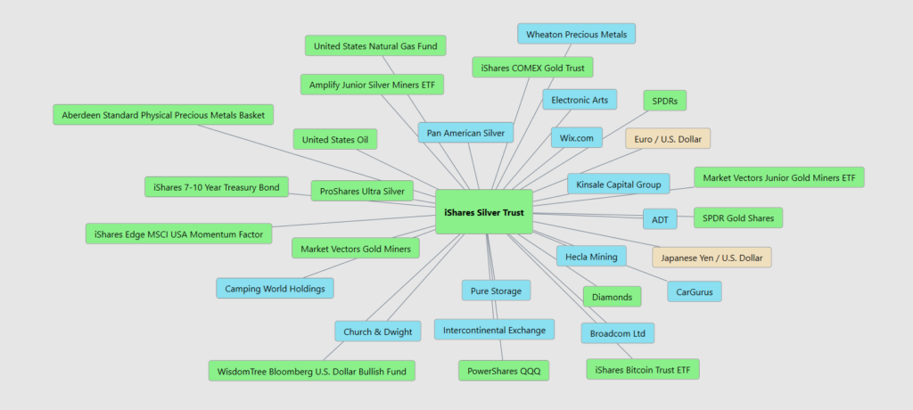 Now look at this graphic and notice what it is quietly shouting. $SLV is sitting in the middle like the hub of a very busy airport, with dozens of other markets flying in and out. Gold, silver miners, junior miners, oil, natural gas, the dollar, foreign currencies, bonds, momentum stocks, Bitcoin, and even tech names all connect back to silver. This tells you something important. Silver is not just reacting to one thing. It is being pushed and pulled by money flows, inflation fears, industrial demand, currency moves, and investor psychology all at the same time.