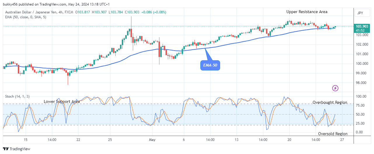 The intervention from the bulls at the $103.66 supply value in the previous action has made the price of AUDJPY rise above the resistance trend levels in recent times.