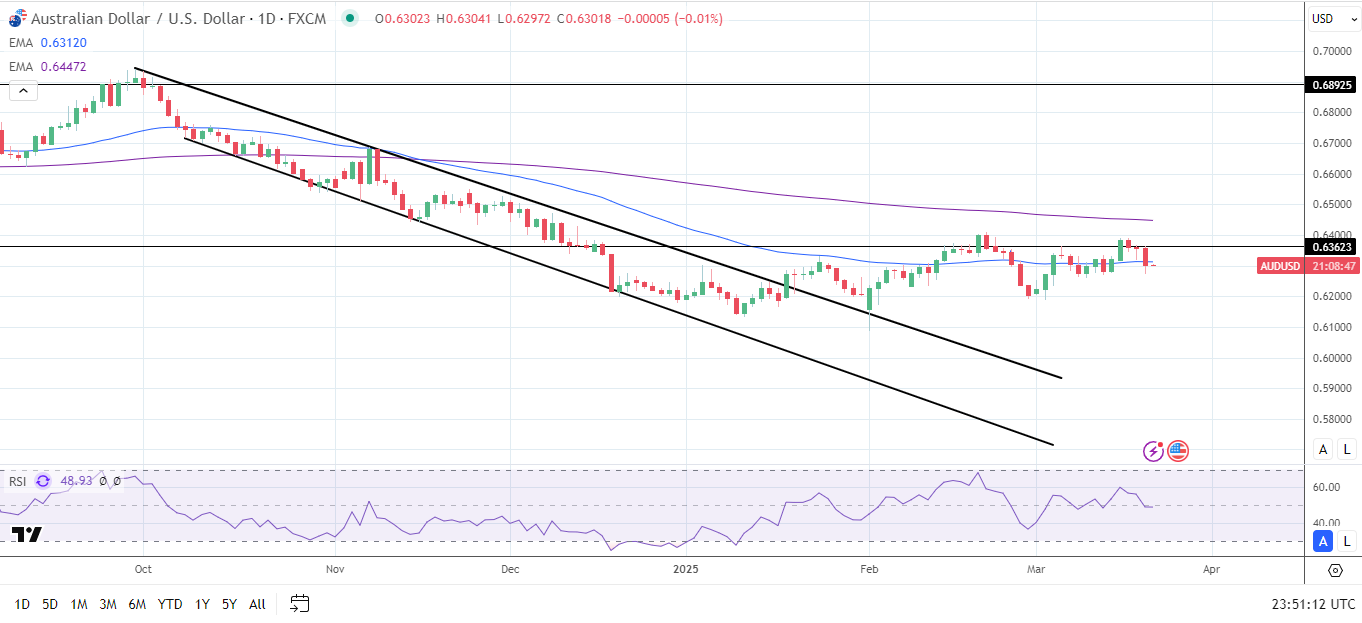 However, easing tariff concerns may revive Aussie dollar demand, potentially driving the AUD/USD pair toward $0.63500.