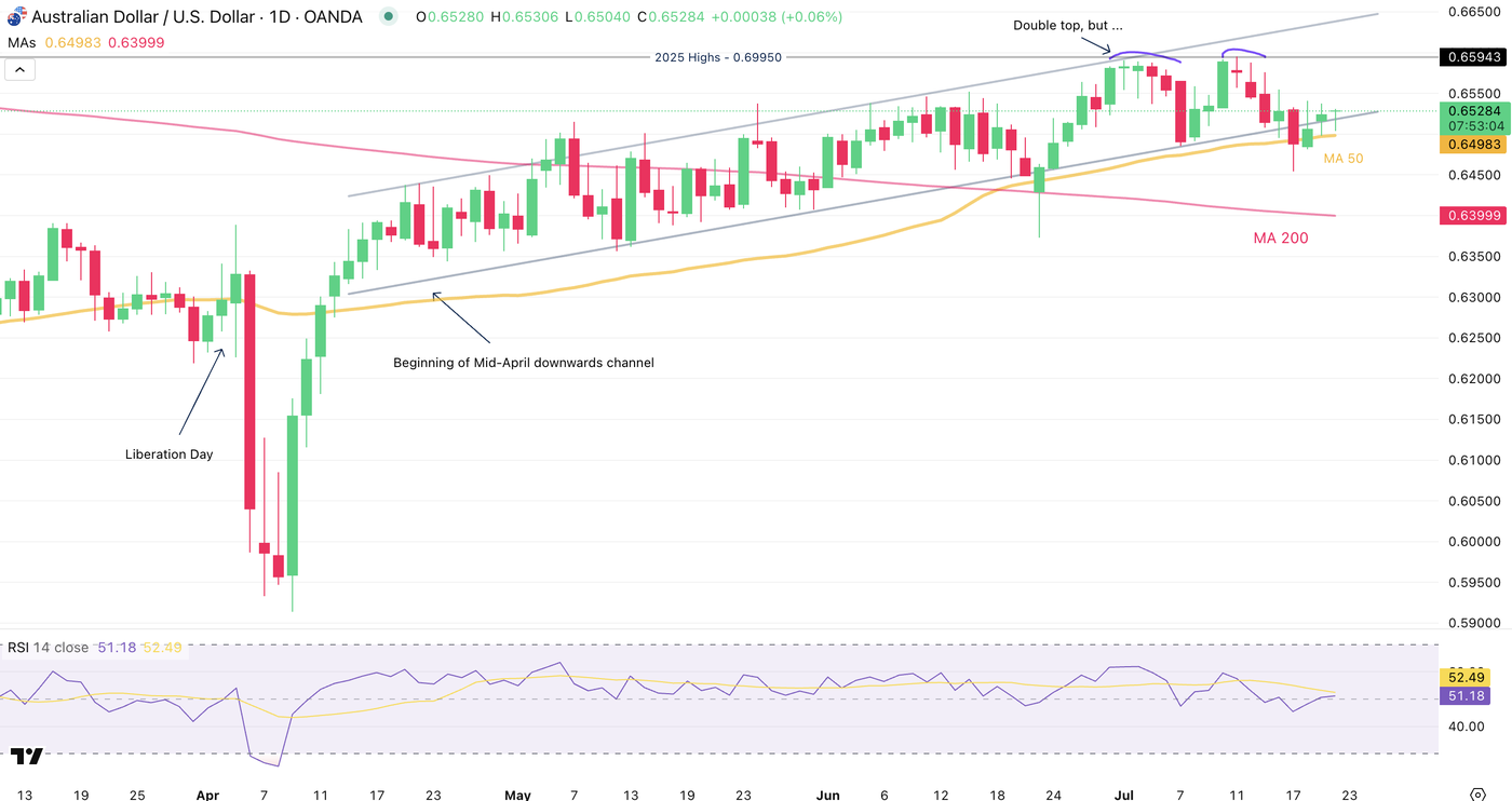 AUDUSD holds key support after RBA Minutes – Watching for channel re-entry on dollar weakness