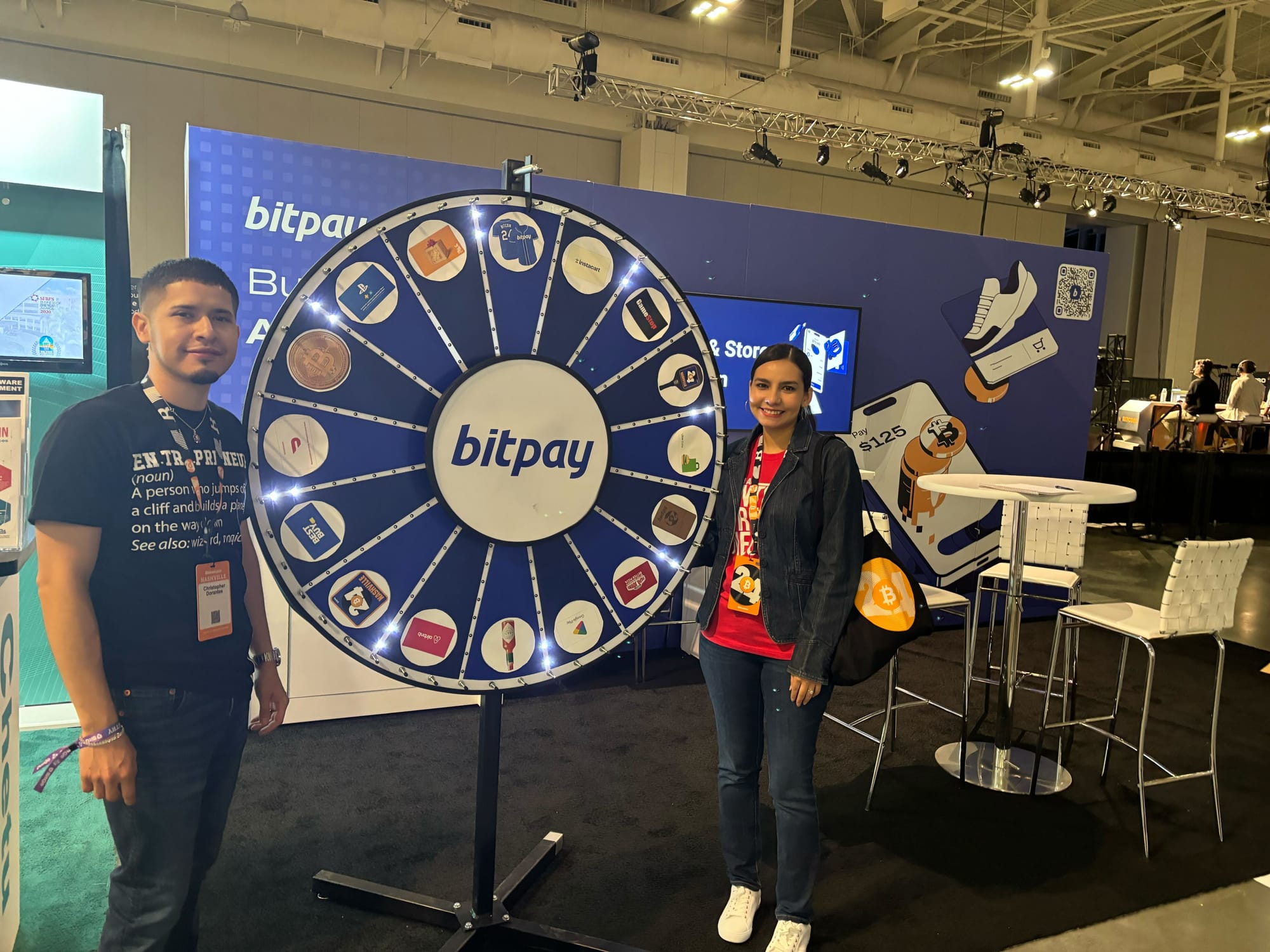 BitPay showcased the latest features of the BitPay Wallet, allowing users to buy, store, swap, send/receive, sell, and spend Bitcoin seamlessly, while engaging with merchants eager to accept crypto payments. The BitPay prize wheel was a hit, offering giveaways like gift cards, custom jerseys, and collectible coins.