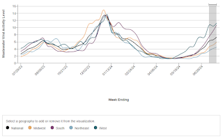 COVID in wastewater is increasing – especially in the West and South.