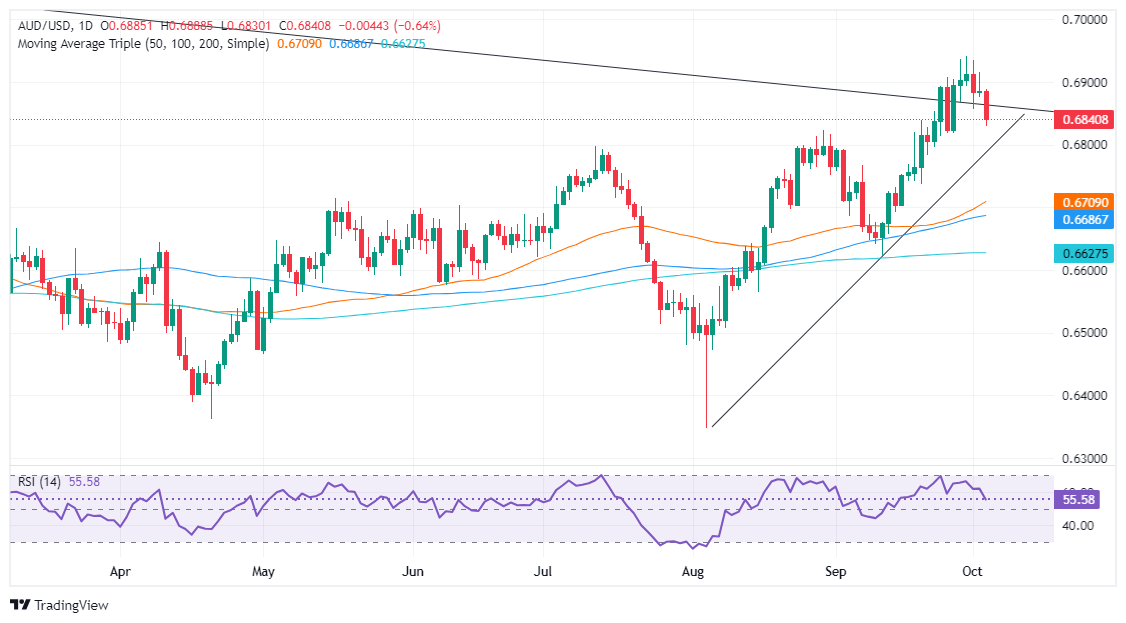 Technical outlook: Australian Dollar extends its losses below 0.6850