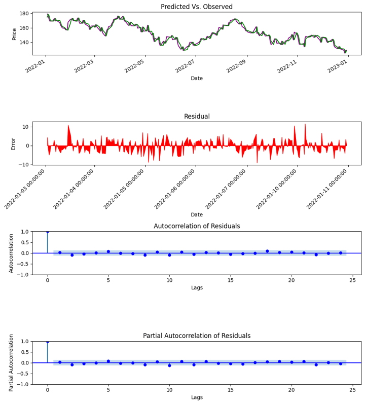 - External Factors: Unaccounted external variables or events that influence the time series but are not included in the model can lead to discrepancies between predicted and actual prices.