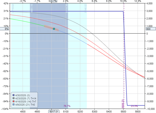 Sell five contracts April 30 SPX 5500 call @ $38.40