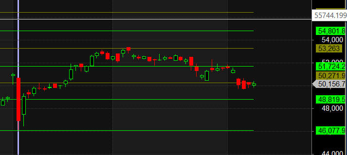 Bank Nifty Gann Monthly Trade level :50653 closed below it.