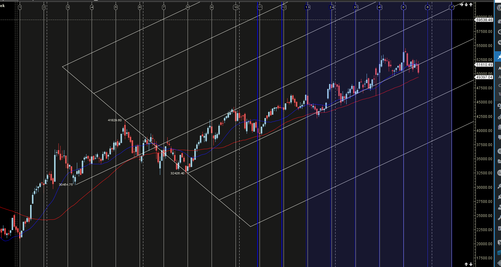 Price just closed at its its 1×1 gann angle support zone.