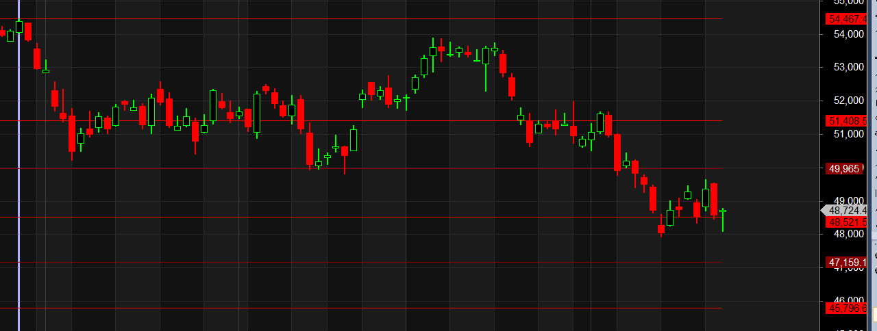 If the price falls below 48,500, bears may gain control, potentially dragging the index to 48,225/48,000 levels.