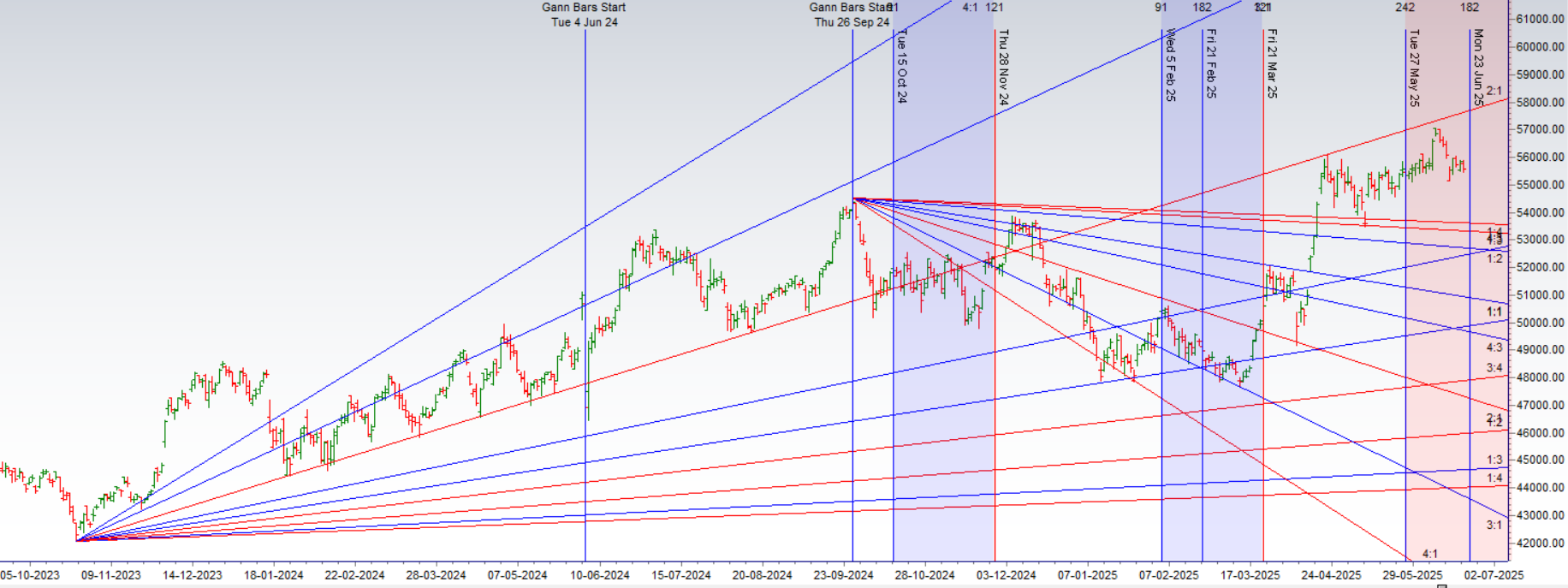 Conclusion: The combination of a daily doji, a weekly NR21 pattern, and key timing factors has put Bank Nifty in a coiled spring formation. The trigger level is clearly defined at 55,534, and a break of this support could unleash significant selling pressure.