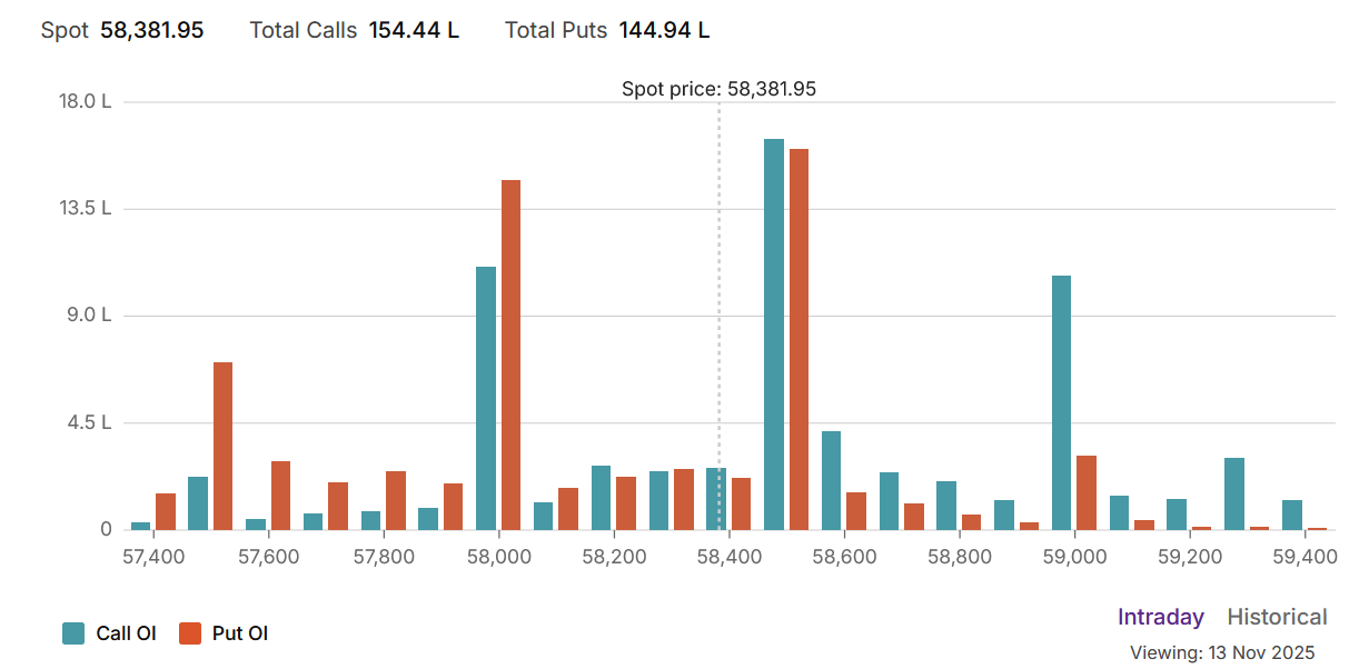 • Immediate Resistance / Pivot: The new Max Pain level of 58,200 is now the immediate pivot. It will act as a magnet, but also as a point of contention where both call and put writers are active.