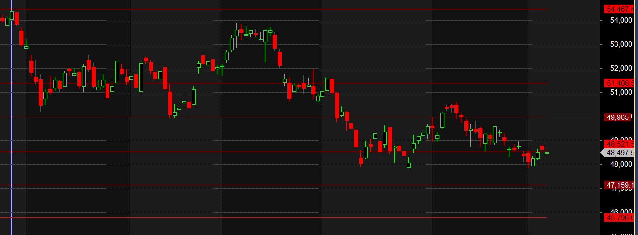 Range-Bound Action: Between 48,300–48,800, expect sideways movement.