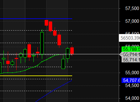 Bank Nifty closed BELOW its 20 SMA @55788 ,Trend is Buy on Dips till above 55700