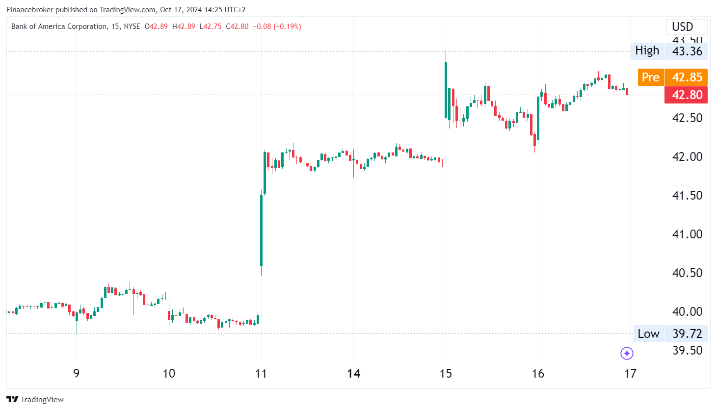 Observing the recent chart specified for Bank of America (NYSE: BAC), it is clear that there has been a lot of volatility in the market over the last five days. On October 11, the stock unexpectedly jumped from just over $40 to more than $42 in a single day. Following that significant spike, the price of the stock has been in a tight trading range of “$42.50” and “$43“, with investors remaining cautious as they evaluate the prospects.