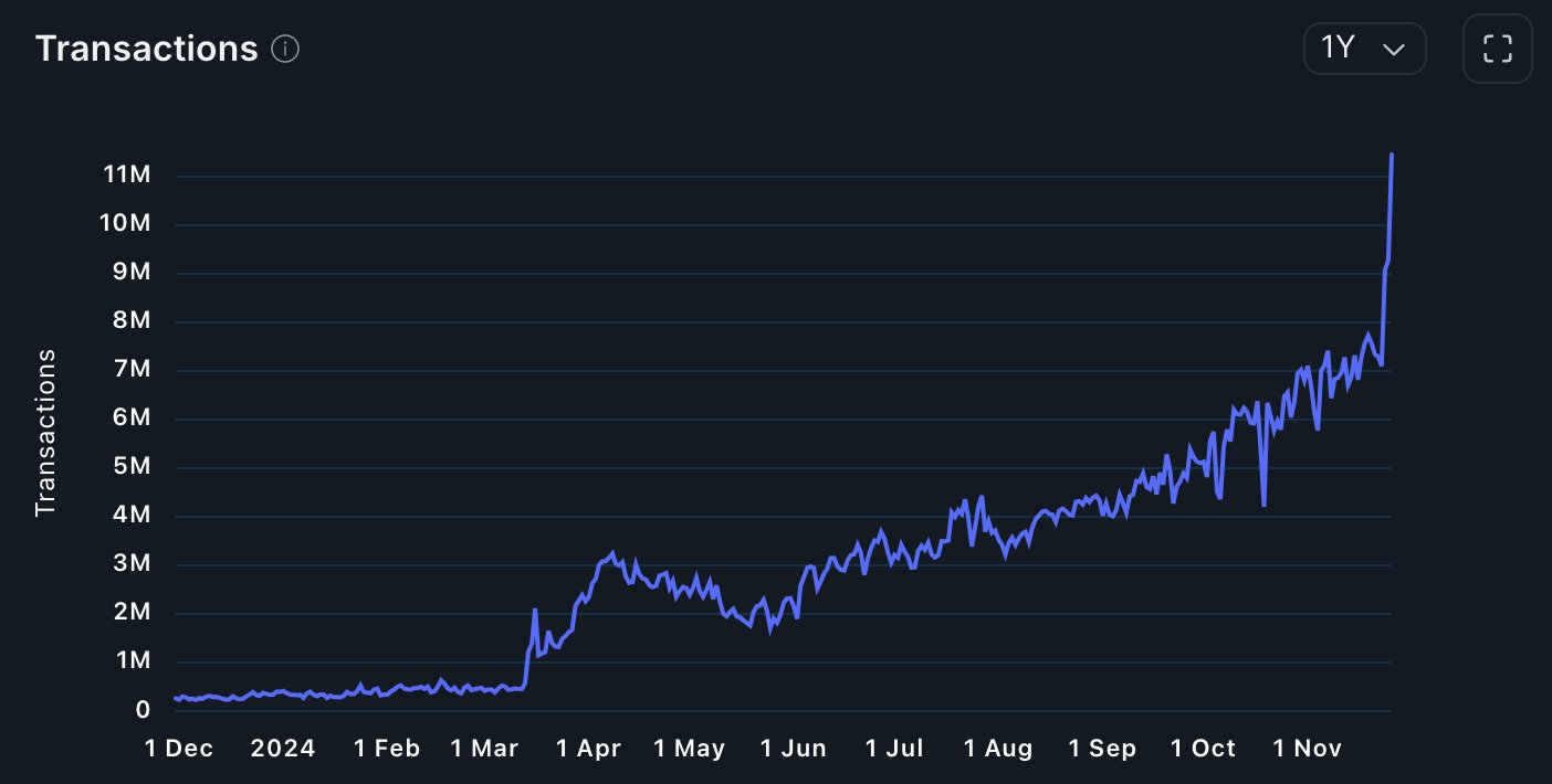 This clarification comes amidst speculation about a potential token launch fueled by the network’s impressive growth. On November 28, analytics platform Nansen reported that Base reached 11.4 million transactions. This represents a 50-fold increase from the 263,000 transactions it recorded in the previous year.