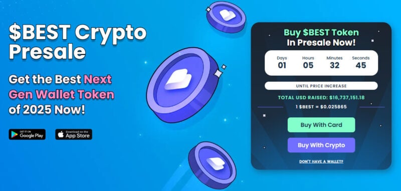 Best Wallet’s impressive presale performance underscores its strong product-market fit, having already raised over $16.7 million, with tokens currently priced at $0.025855.