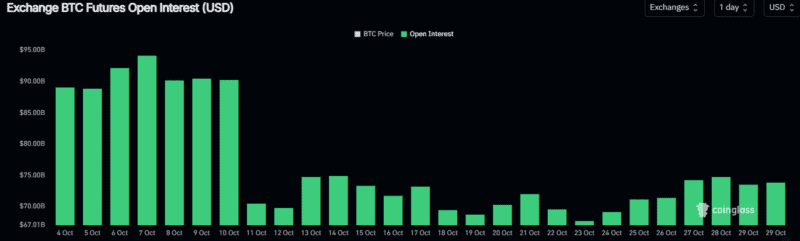 Meanwhile, Bitcoin open interest has rebounded to $74B from its low of $67.7B on October 23, and ETF inflows have been picking up; these are clear signs that liquidity is returning to the crypto market.