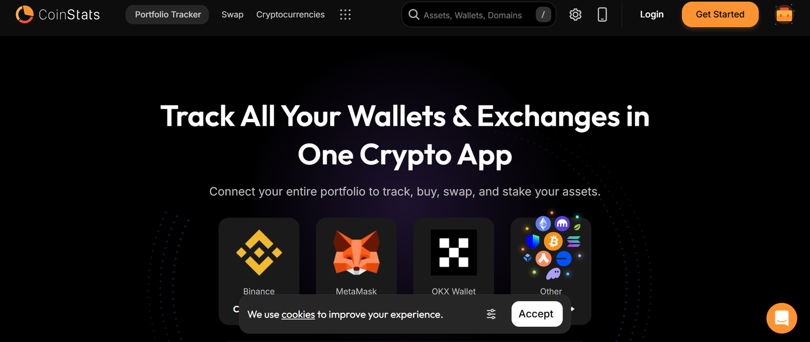 CoinStats is a cloud-based crypto portfolio tracking tool that connects to over 300 exchanges and wallets. It pulls your transactions, balances and performance metrics into one clean dashboard.Instead of logging into Binance, Coinbase, Kraken and MetaMask separately, CoinStats aggregates everything in real time. That means: