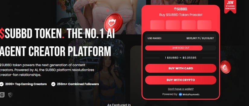The project is in presale today and has accumulated over $830K so far, with $SUBBD valued at $0.05595.