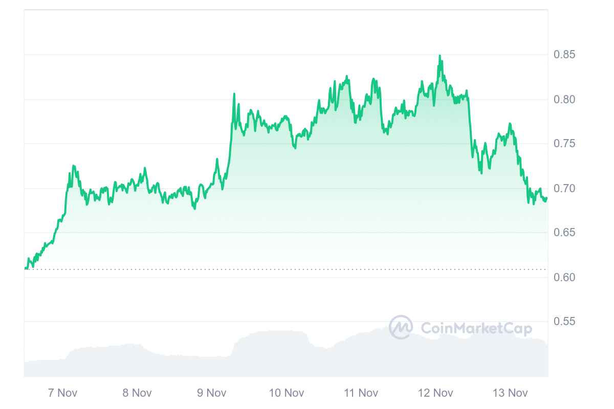 Jupiter’s 24-hour volume-to-market cap ratio of 0.3028 highlights relatively high liquidity, suggesting that trades can be executed with limited price slippage. Jupiter’s availability on major exchanges like Binance further boosts its accessibility and trading volume.