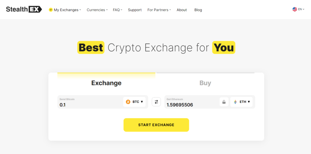StealthEX does not require registration, allowing anyone to buy and exchange cryptocurrencies quickly and effortlessly on the fly. Simply go to the site, buy your preferred cryptocurrency, or trade cryptocurrencies, and keep them in your preferred wallet outside of StealthEX.