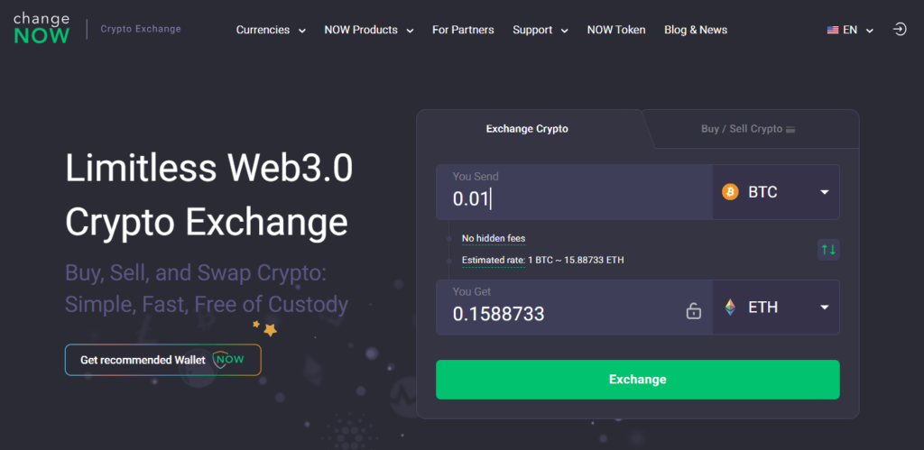 ChangeNOW is a non-custodial crypto exchange that lets users buy/swap crypto without creating or verifying an account. It was launched in 2017. The ChangeNOW company belongs to the CHN Group Limited and is headquartered in Mahé, Seychelles. The company has recently expanded its offices in Amsterdam, The Netherlands. The platform itself enables swapping of one cryptocurrency into another across more than 1000 individual crypto tokens and allows its users to buy cryptocurrency with a USD/EUR card.