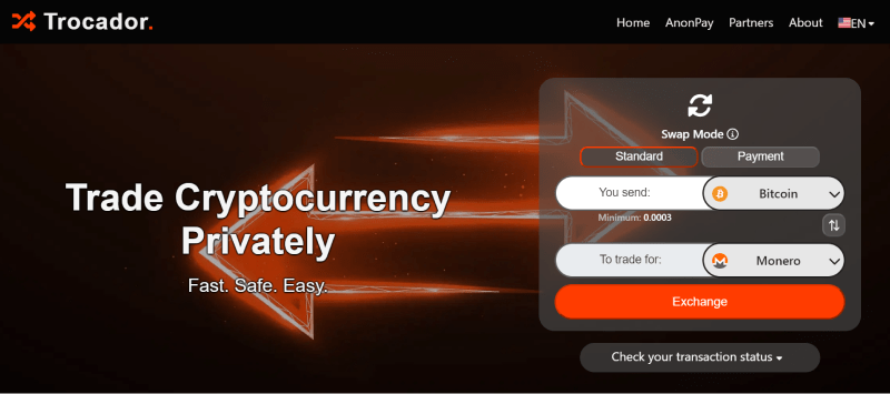 Trocador is an exchange aggregator that’s focused on its users’ privacy and that seeks out the best possible rates from partner exchanges when you enter the desired transaction. This eliminates the need for you to create an account on a centralized exchange or disclose personal information. The platform quotes in 14 different exchanges, 26 types of simultaneous rates and offers 60 different coins.