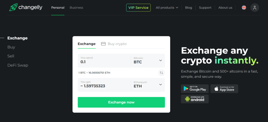 Changelly is a cryptocurrency exchange founded in 2016 and headquartered in the Czech Republic. The platform’s crypto collection includes over 500 cryptocurrencies. A cryptocurrency trader can get started with Changelly simply by providing their email address. To unlock more advanced features, such as paying for cryptocurrencies with fiat currencies, a user will have to provide the service with more information about themselves.