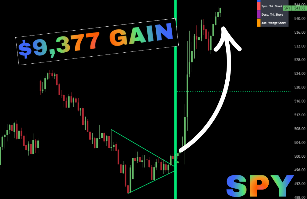 Or take the April 9th move on $SPY—the system spotted a symmetrical triangle before a breakout that led to a $9,377 return on a $1,000 trade.
