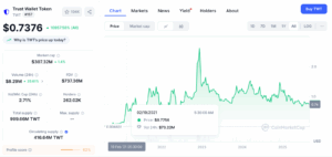 Therefore, we have analyzed the growth patterns of other wallet tokens. For example, Trust Wallet Token ($TWT), the native currency of Trust Wallet, experienced rapid growth in the year following its launch.