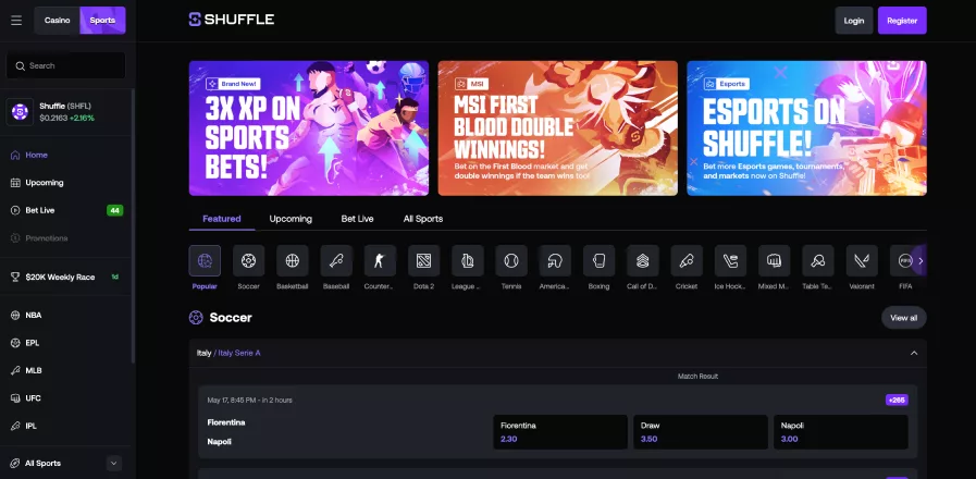 Meanwhile, Shuffle has quickly made a name for itself since its debut in 2023. Shuffle offers a wide variety of casino games and sports betting options, along with generous bonuses and a $10,000 Weekly Race for competitive bettors.