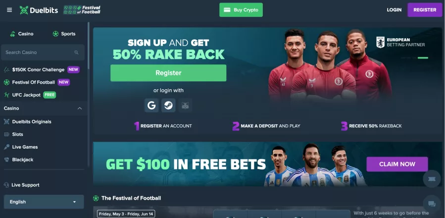 Likewise, for the Fury vs. Usyk match, Duelbits offers a professional and engaging betting environment, enhanced by a 50% rakeback bonus.