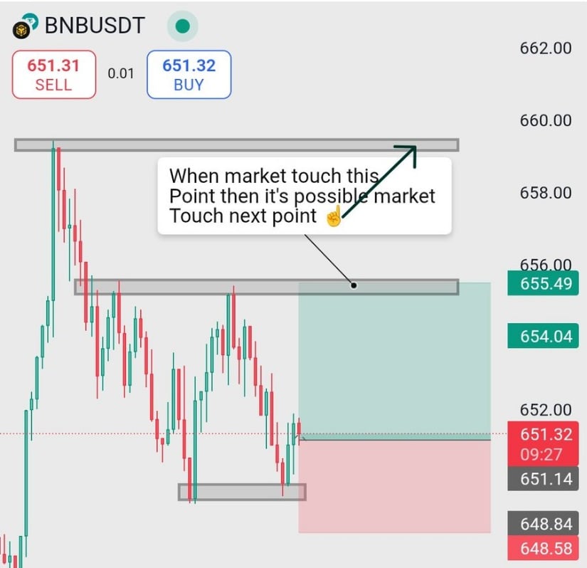 Minor resistance around $655.49 remains the next key level to watch. The price has struggled to break above this area, which forms part of a broader resistance zone stretching toward $660. The chart analysis from X suggests that if BNB reclaims this intermediary level with momentum, it could push toward higher resistance, potentially initiating a breakout above $660. However, selling pressure around this zone has proved consistent, marking it as a technical barrier.