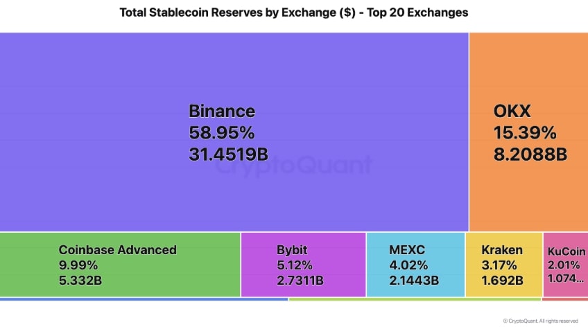 Binance Holds $31B in Stablecoins—Nearly 60% of All CEX Reserves