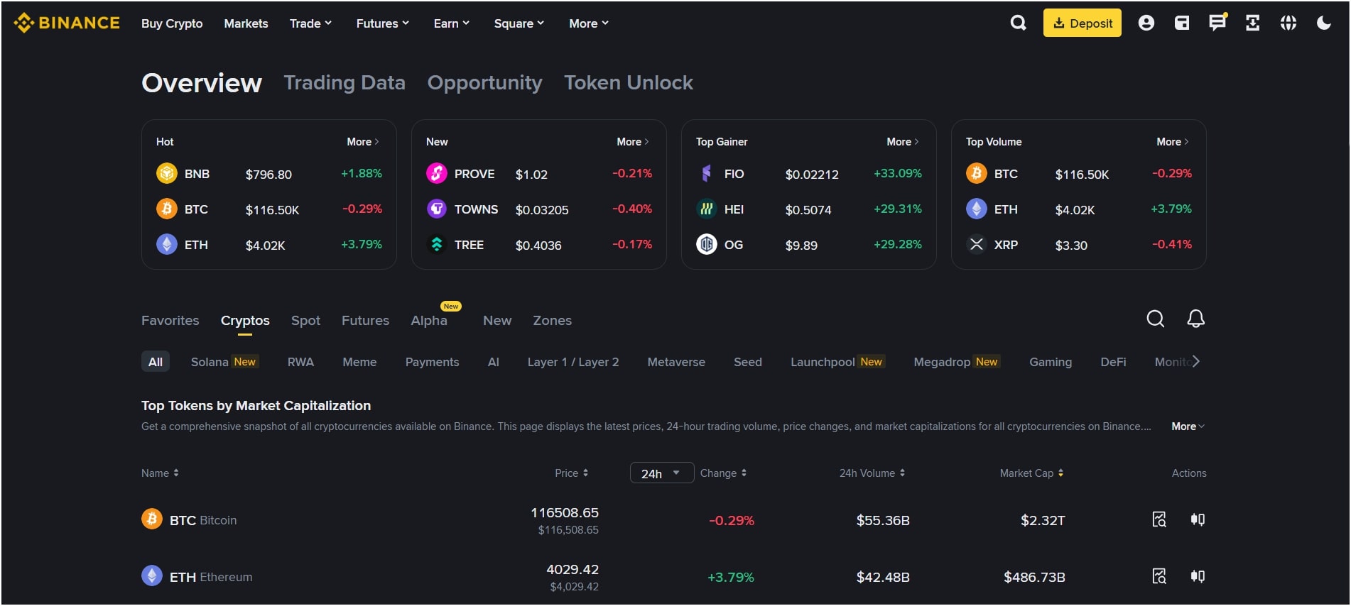The depth of Binance’s order books is one of its standout strengths. You gain access to 500+ digital currencies and more than 1,500 spot trading pairs. This means you can trade everything from well‑known coins like BTC, ETH, and BNB to newer tokens in DeFi, gaming, and layer 2 ecosystems.