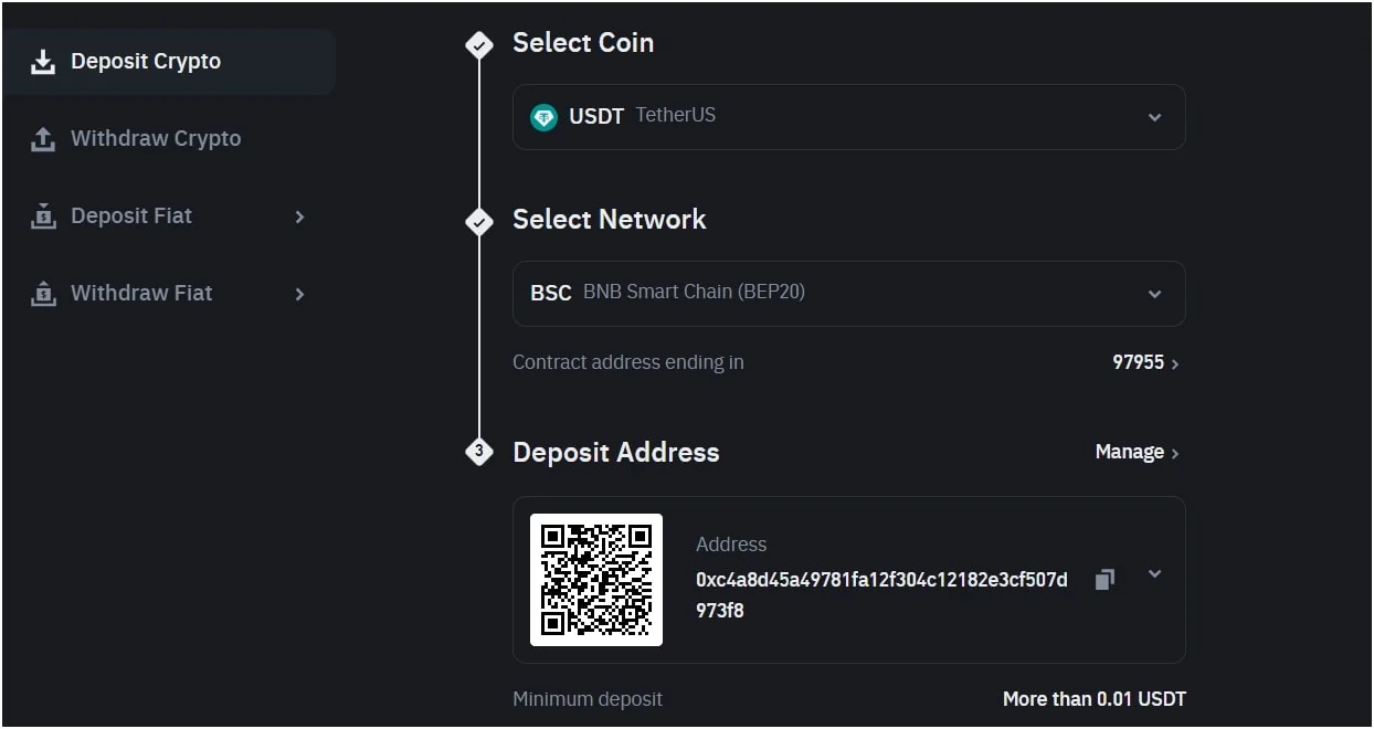 Once logged in, you have to locate the “Wallet” tab on the top menu and choose to deposit funds. You can either transfer crypto from another wallet or deposit fiat currency through a bank transfer or any other supported payment method.