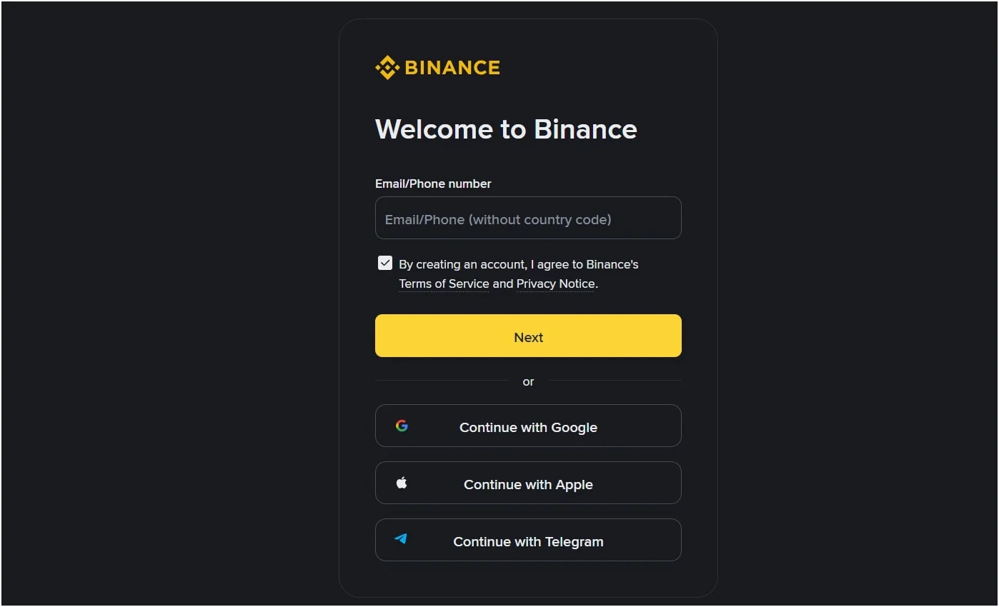You need to start by navigating to binance.com and logging in to your account with your email and password. Make sure you have completed the necessary identity verification because Binance requires KYC before enabling full trading. Also, if you don’t have a Binance account, you can use our Binance referral code during registration and get a $100 free crypto sign-up bonus.