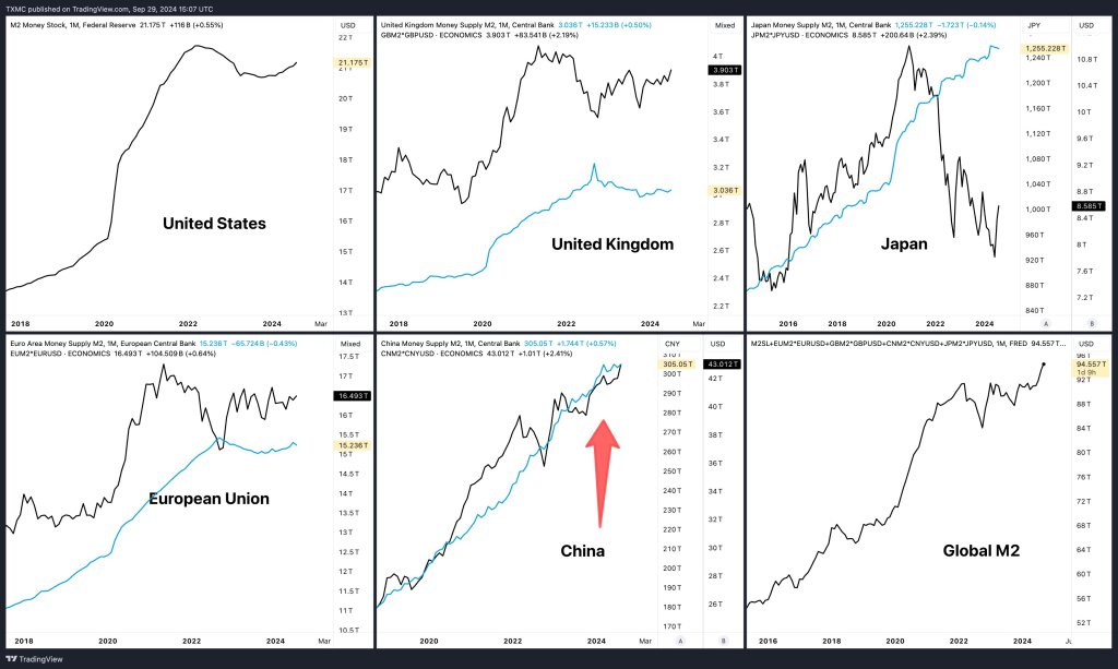Its M2 money supply is larger than that of the United States in USD terms. Subsequently, it is the primary driver in global M2 money supply expansion.