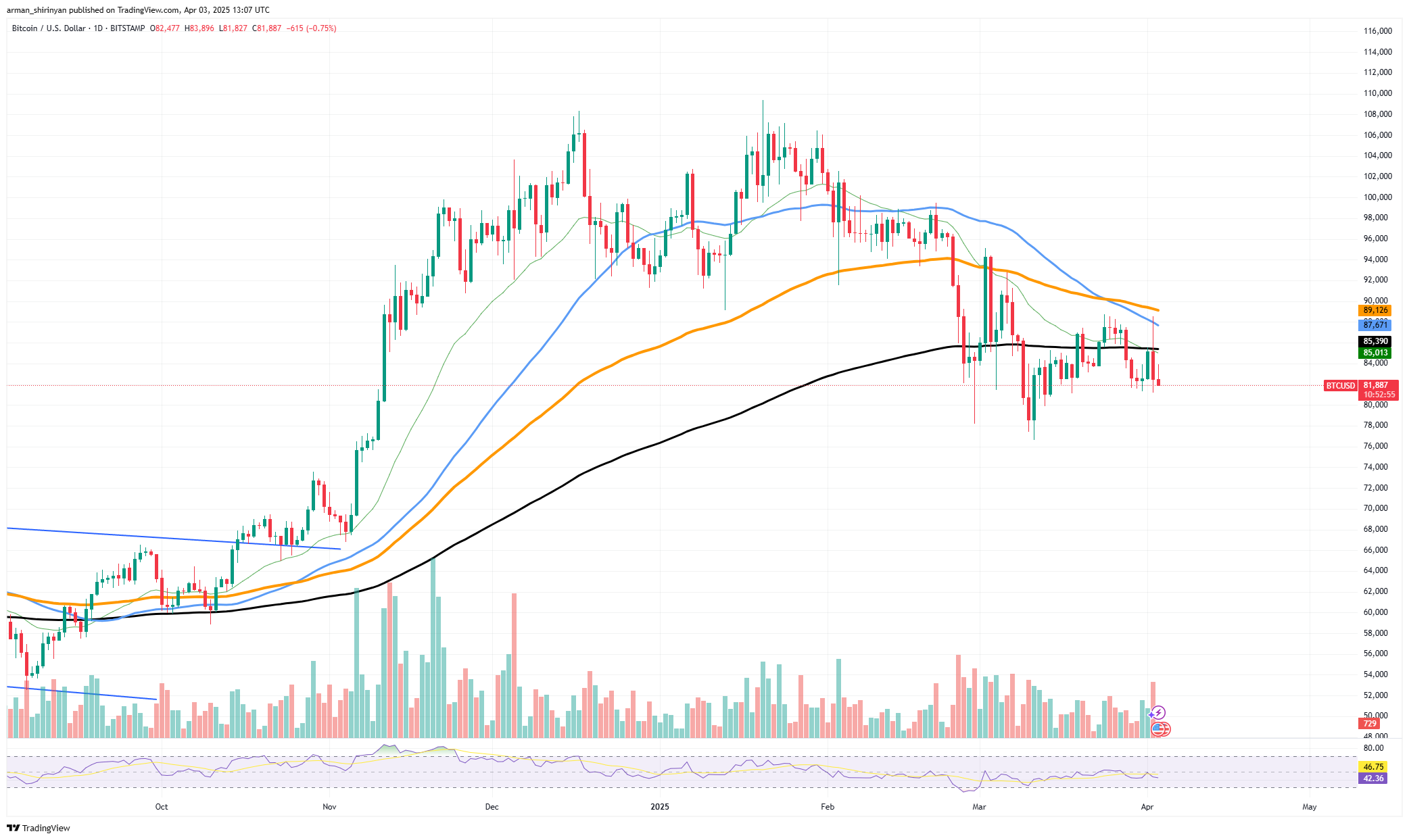 Bitcoin, which has been exhibiting signs of stabilization after weeks of hesitancy and erratic trading, is currently holding steady at $84,000. The long-awaited tariffs have finally been formally introduced, eliminating a significant layer of uncertainty that had kept markets cautious.