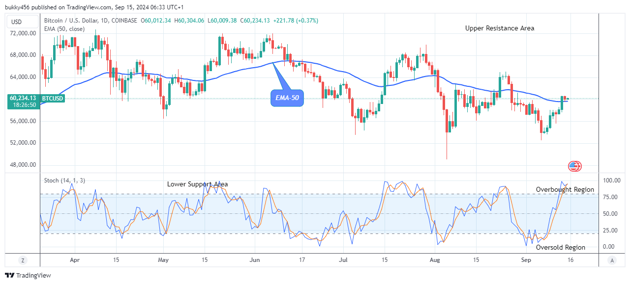 Actions from buyers have also increased the coin further up to the $60,250 resistance value as it journeys up north. More gains are possible if the bulls put extra effort into the price action.